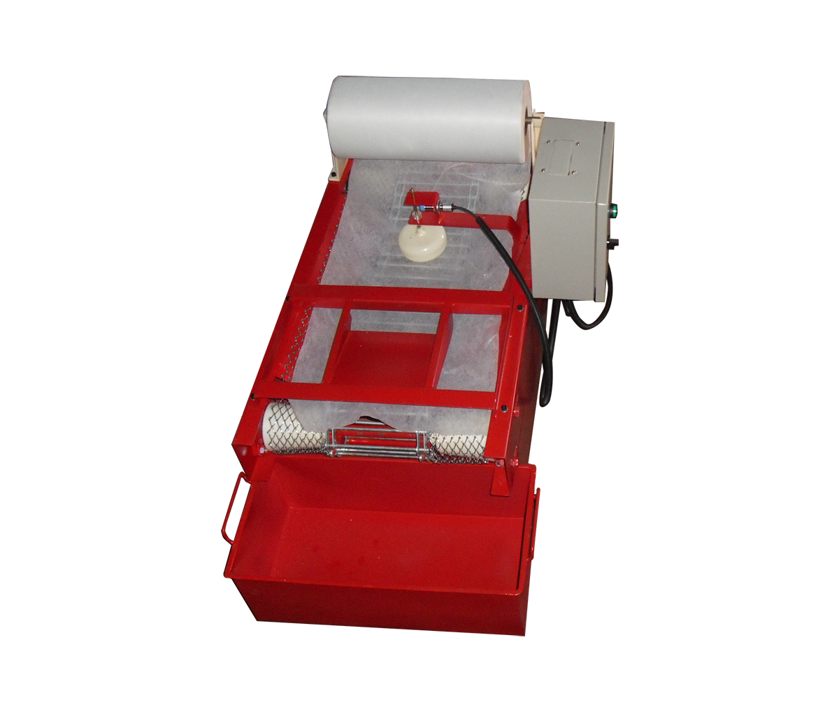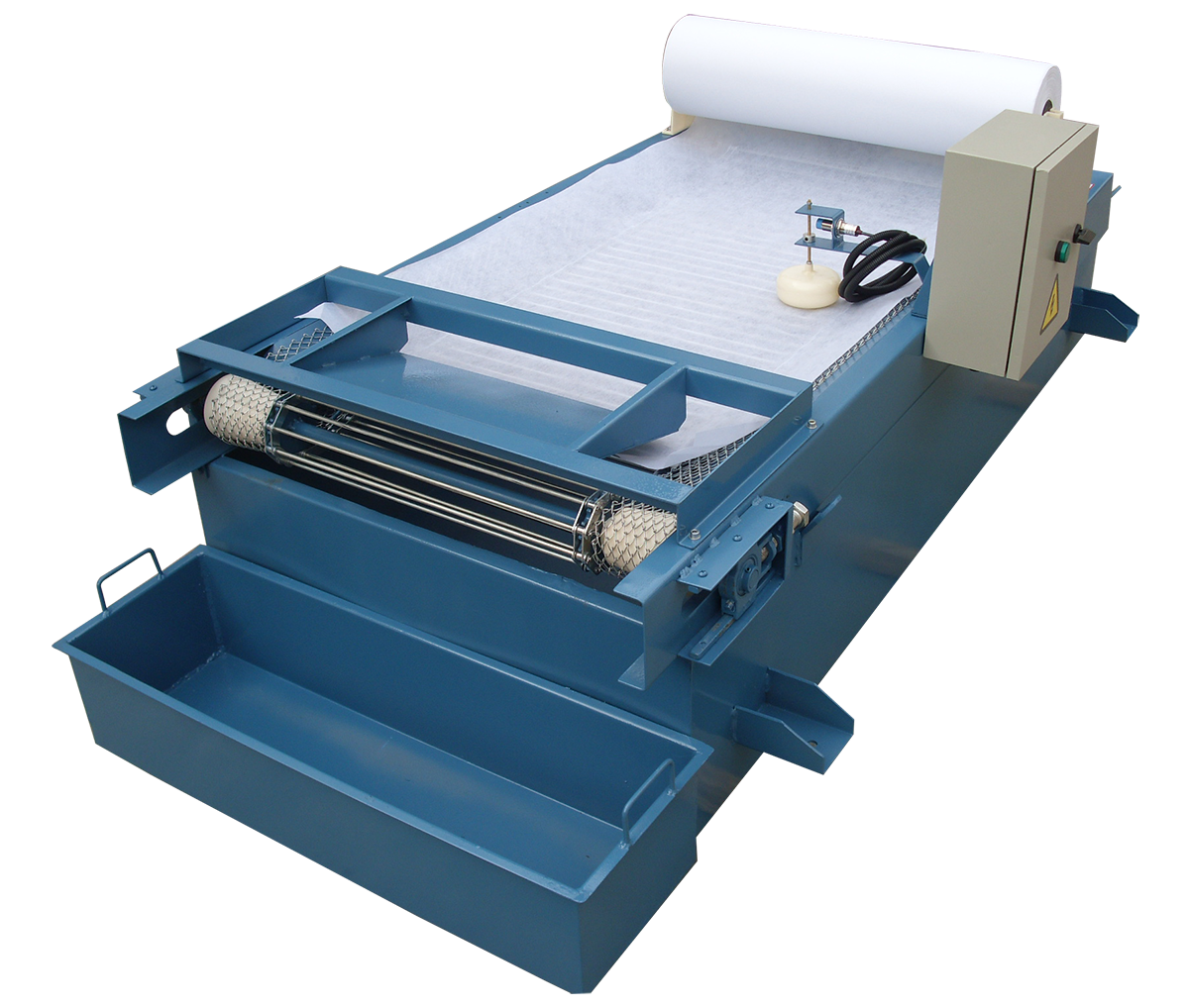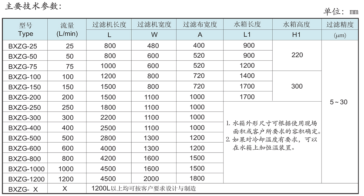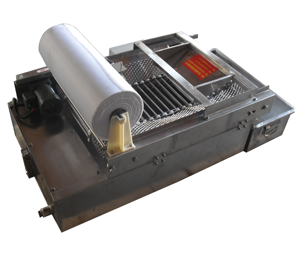 BXZG系列紙帶過濾機(jī)是由減速機(jī)、傳動(dòng)機(jī)構(gòu)、過濾布、液箱、集污箱、發(fā)訊機(jī)構(gòu)等幾部分組成。該過濾機(jī)利用過濾布將冷卻液、油中的雜質(zhì)進(jìn)行過濾。當(dāng)冷卻液、通過過濾布進(jìn)行過濾時(shí)由于冷卻液、油中含有的雜質(zhì)將過濾布堵塞,使液面升高,由液面控制接近開關(guān)發(fā)出信號(hào),傳動(dòng)機(jī)構(gòu)運(yùn)動(dòng)把含有雜質(zhì)的過濾布輸送到集污箱中,新的過濾布進(jìn)入下一個(gè)循環(huán),液面同時(shí)降低,傳動(dòng)機(jī)構(gòu)停止運(yùn)行,全套運(yùn)行動(dòng)作由該設(shè)備自動(dòng)控制。