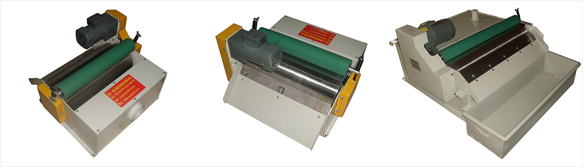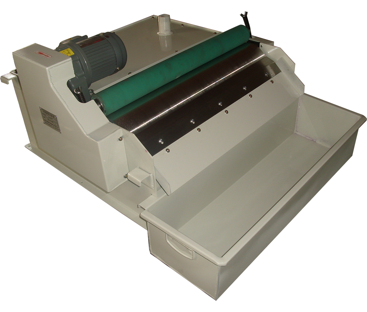 BXCF系列磁性分離器由減速機(jī)、箱體、磁輥、膠輥及刮屑板等幾部分組成。減速機(jī)帶動(dòng)磁輥?zhàn)骰剞D(zhuǎn)運(yùn)動(dòng),含有粉末狀吸磁雜質(zhì)的冷卻液進(jìn)入箱體后,雜質(zhì)被吸附到磁輥上,經(jīng)過膠輥的碾壓,將雜質(zhì)中含有的液體擠出,再由刮屑板將雜質(zhì)與磁輥分離。